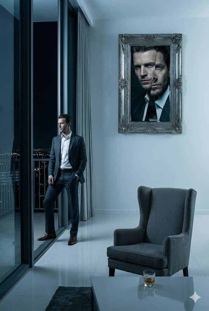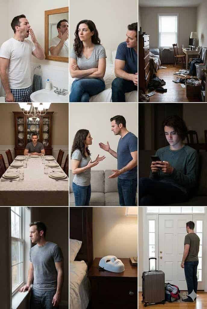 Ofte foretrekker han å gå ut med kompisene i timevis eller bli på kontoret, fordi det er lettere å fortsette å spille rollen som den «kule fyren» enn å møte den komplekse virkeligheten hjemme, der masken truer med å smuldre opp.
