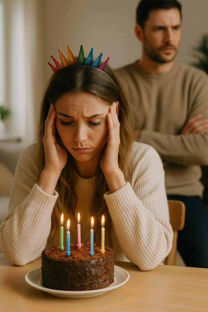 Du planlegger, baker, inviterer folk, prøver å gjøre alt perfekt. Men mens du anstrenger deg, fortsetter han å trekke seg unna. Og når dagen kommer, sier han: «Jeg ville at du skulle være glad, men du er allerede anspent igjen.» Du føler deg skyldig – for hans kulde.